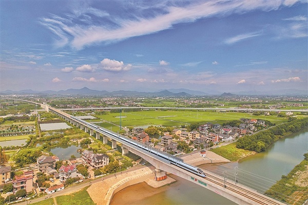 今年暑运,中国铁路上海局集团有限公司精准实施“一日一图”,按需确定图定旅客列车上线和临时旅客列车启动时机,梯次投放运力,累计增开旅客列车5556列,全力保障旅客出行需求。图为近日,一趟复兴号动车组列车安全行驶在商合杭高铁上。周围 摄
